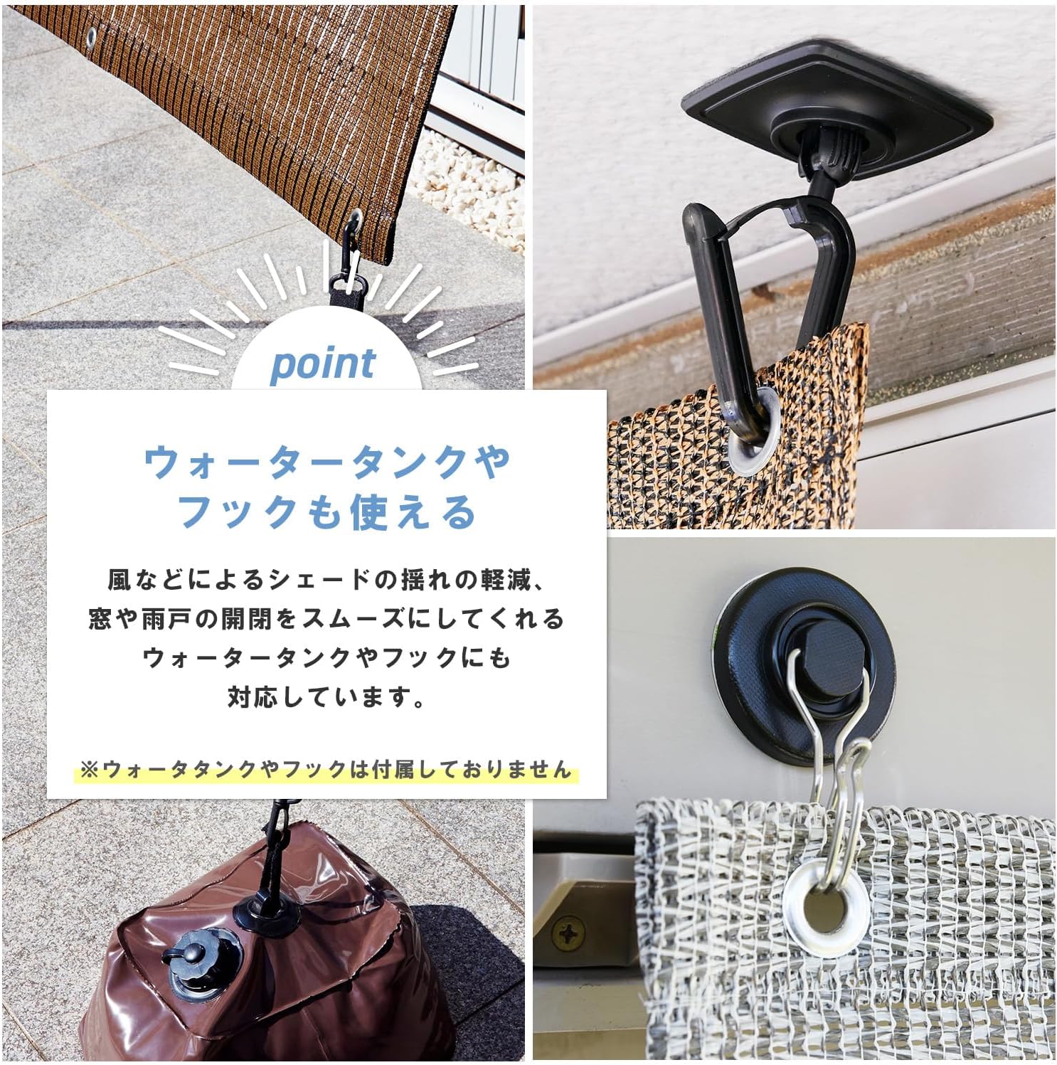 Convenient garden shade for sun shade and blindfold. Gently softens direct sunlight. Reduces indoor temperature rises and saves energy. If it gets dirty, it can be washed with water. Includes 8 grommets. Rust resistant aluminum grommets Mounting rope 9.8 ft (3 m) x 2 pieces. Do not use on windy days.